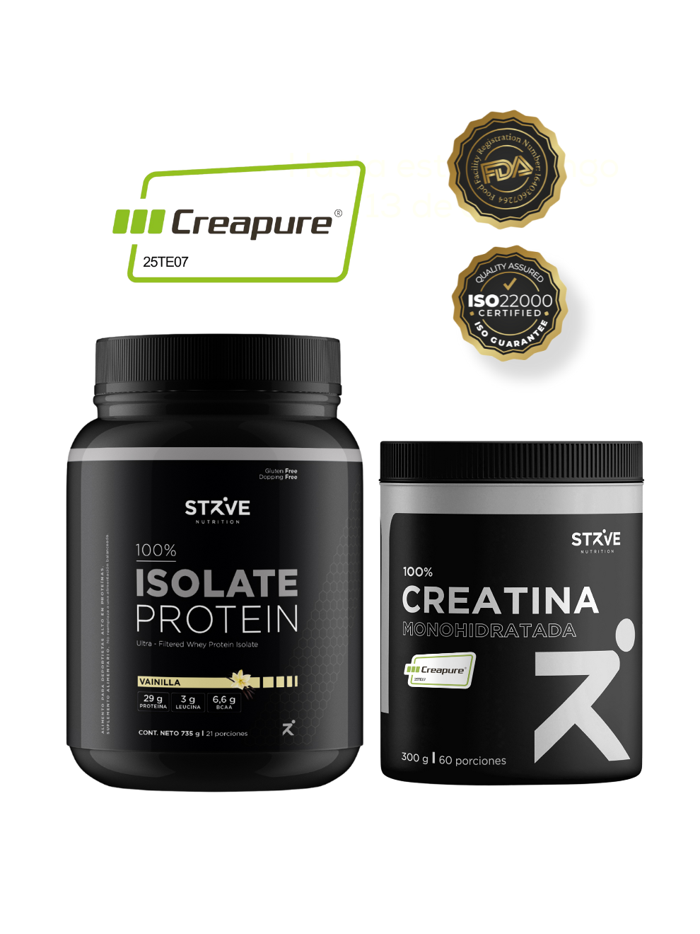 Hemos elegido con mucho cuidado nuestra materia prima para producir el mejor suero de leche aislado del mercado. Junto a ella, Creatina con certificación Creapure, el más alto estándar del mercado a nivel mundial.